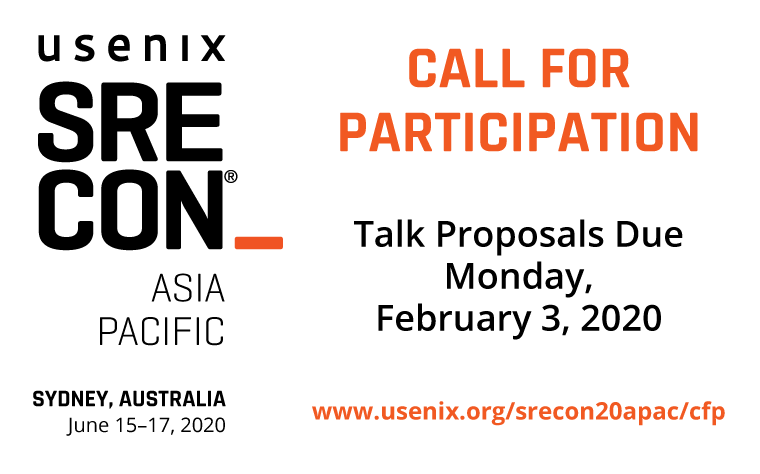 ICYMI, the SREcon20 Asia/Pacific CFP is now live: http://bit.ly/srecon20apcfp Talk proposals are due Monday, Feb. 3, 2020, 23:59 UTC. The conference will be held June 15-17 in Sydney, Australia.pic.twitter.com/2pIA3mzXC2