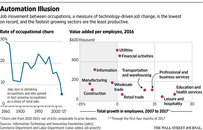 The economy is suffering from too few "robot" job-destroying innovations, not too many https://www.wsj.com/articles/robots-arent-destroying-enough-jobs-1494434982 …pic.twitter.com/JpUuWk5ktx