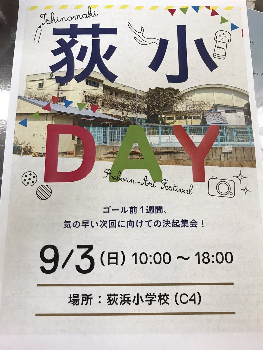 再告知するよー、リボーンアートフェスティバルの牡鹿半島の荻浜小学校の「荻小DAY」イベント内容告知、楽しんでいってね!