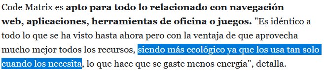 Seguimos con las innovaciones que aporta CodeMatrix (¿pero no era CMOS?) al panorama. La primera frase es lapidaria: es idéntico a todo lo que se ha visto hasta ahora. La segunda, para mearse: es más ecológico porque solo usa los recursos cuando los necesita.pic.twitter.com/CzSLAz6y1Q