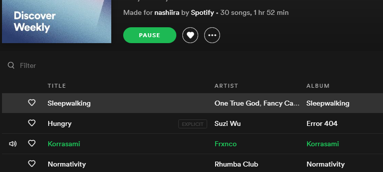 Discover Weekly finally figuring me out and playing a song called Korrasami. https://open.spotify.com/track/2hUyioEOJM1olovGGUsU6F?si=7rfHJuFqQPqDCaROHwofvQ …pic.twitter.com/WomOQrmd76