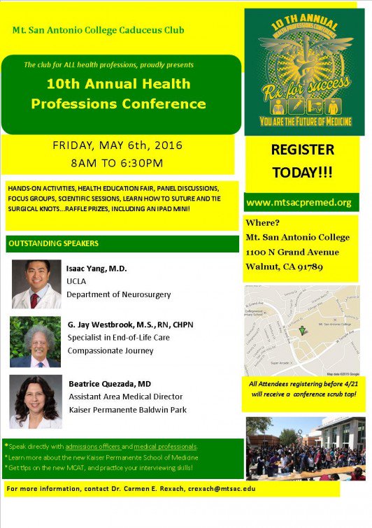 @SAConScene Registration open for annual health professions conference at Mt SAC. Event held on May 6.#SOSMTSACpic.twitter.com/svDqiUurdK