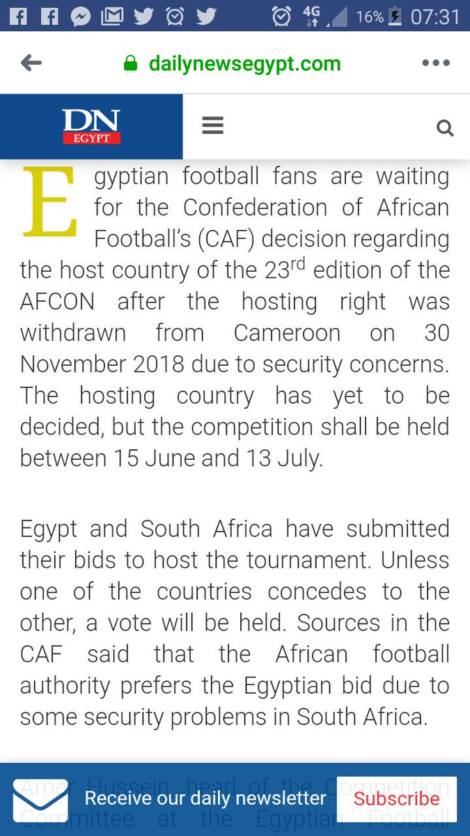 Unfortunate how this whole AFCON 2019 is turning to be a geo political war. Don't know if Egypt is engaged in some proxy figh with SA for Morocco but this whole process will leave too much bitterness in the end.https://twitter.com/Africansoccerup/status/1081444387782041600 …