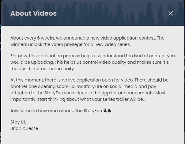 The last I had heard with storyfire is that they allowed trailer videos with the stories. I have an account, but where it was in such an early stage it was hard for me to use personally.