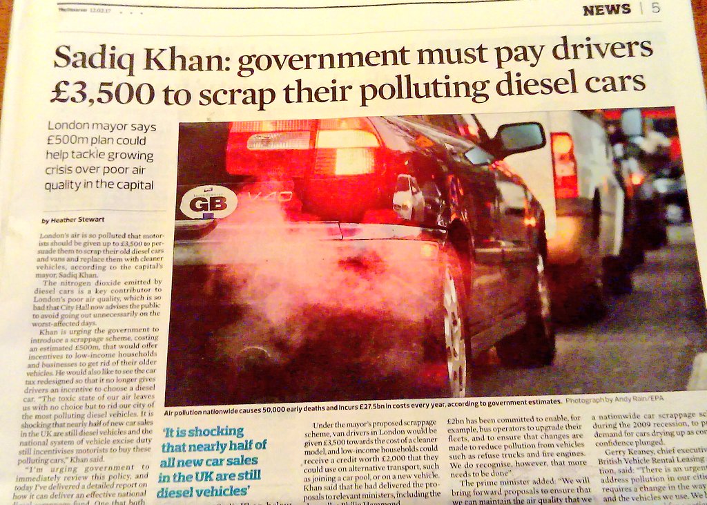 Sadiq Khan: Government must pay drivers £3,500 to ditch diesel carshttp://www.standard.co.uk/news/mayor/sadiq-khan-says-government-must-pay-drivers-3500-to-ditch-diesel-cars-a3464886.html …