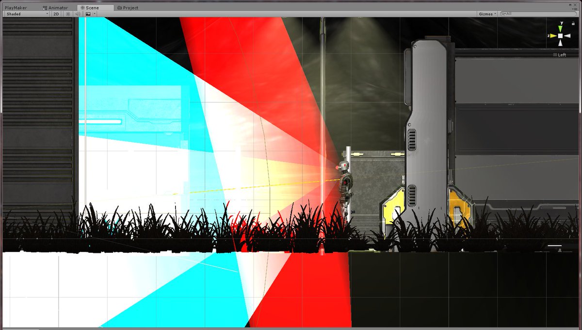 When a light source behind the door not only creates dynamic shadows but affects your visibility too. Screen corners are bright when you are visible and dark when you are hidden.