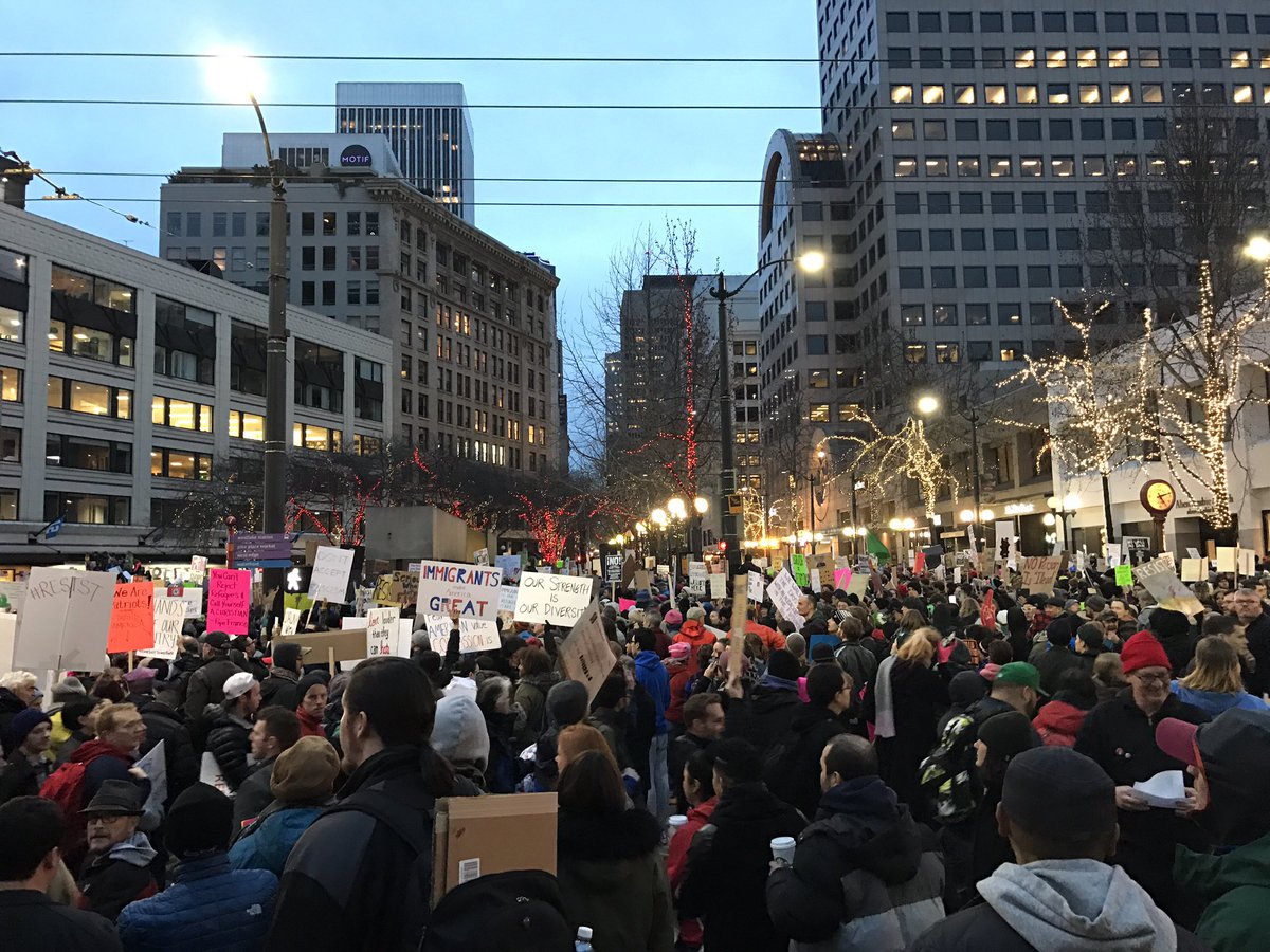 Gr8 turnout for the immigration ban protest yesterday in Seattle!pic.twitter.com/kYoT15OFPx