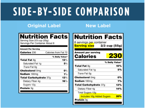 New nutrition labels required for manufacturers w/ >$10 million in sales/year More emphasis on serving size, calories/serving and new line for grams of *added* sugars What else would you change or add? https://www.rwjf.org/en/blog/2020/01/new-year-new-nutrition-facts-label.html?rid=0032S00002BC4o1QAD&et_cid=1966541 …pic.twitter.com/bItCyn7Fj6