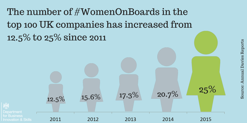 #WomenOnBoards has reached 25%, up from 12.5% in 2011 when the target was set https://www.gov.uk/government/news/prime-minister-my-one-nation-government-will-close-the-gender-pay-gap …pic.twitter.com/h1jdXOyyKI