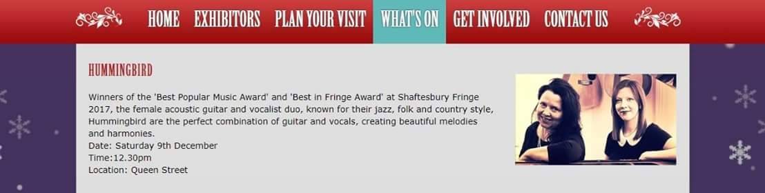Limelyte, an acoustic duo covering a wonderful range of music from 1960's to the present day, will be performing at our market on Sunday 26th November from 12pm