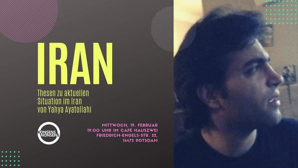 I will deliver an speech about the situation of Iran on the 19th February in the University of Potsdam. 19:00 - 21:30 Friedrich-Engels-Straße 22, 14473 Potsdam نوزدهم این ماه درباره وضعیت کنونی ایران در دانشگاه پتسدام به زبان انگلیسی سخن خواهم راند. https://www.facebook.com/events/2556195907987116/ …pic.twitter.com/8Oq8mhwkWA