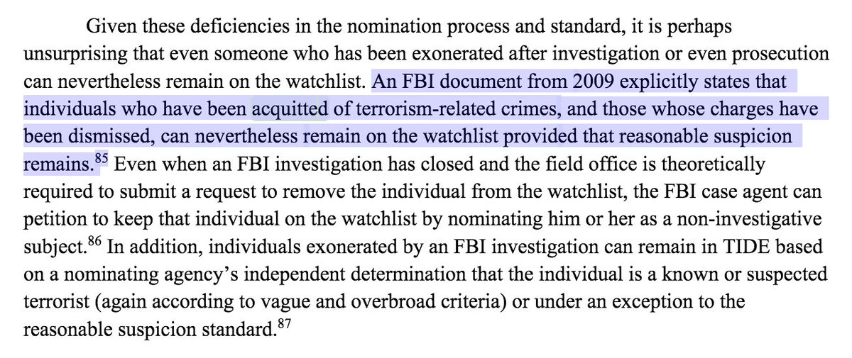 Remember: you can be *acquitted* of terrorism charges & remain on the watch list. See