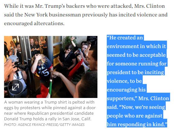 And that's why @HillaryClinton should say that the violence against Trump supporters is detestable. Full stop.https://twitter.com/davidfrum/status/739093380462874625 …
