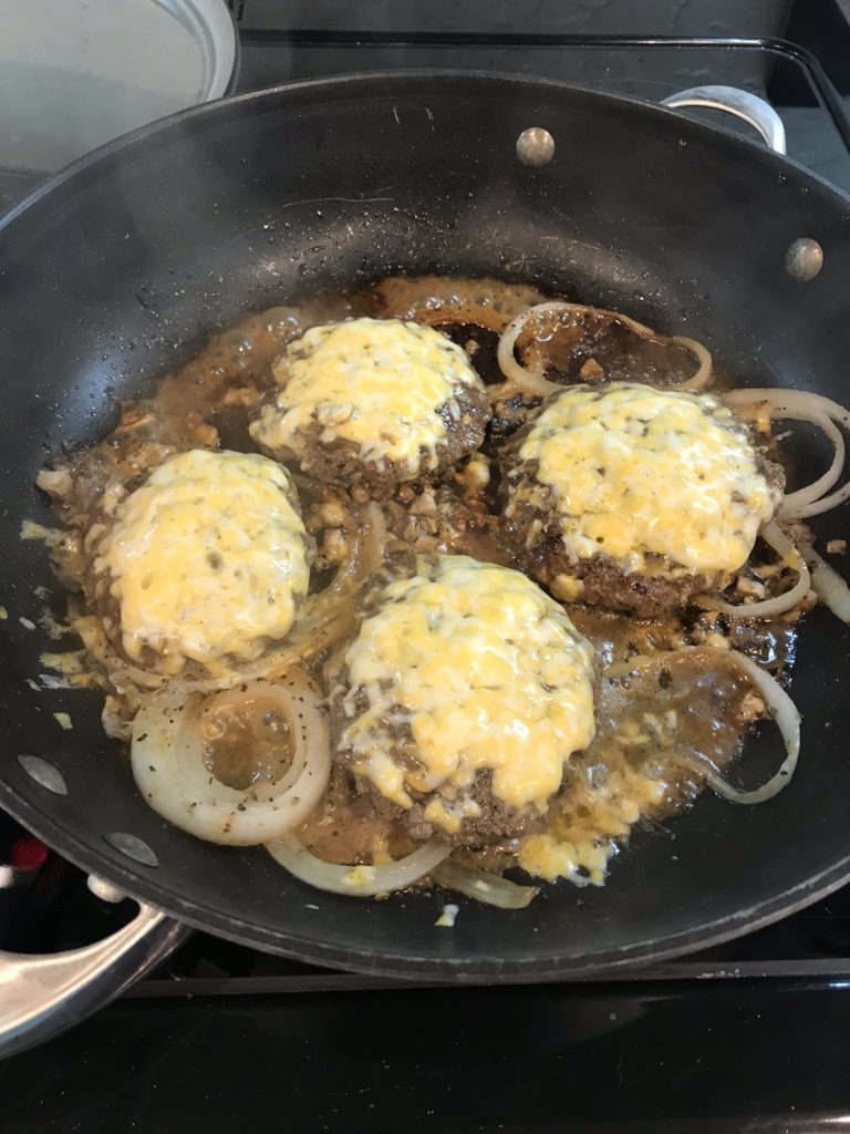 Bison blended with chopped mushrooms, garlic and jalapeño, topped with onion and mushrooms cooked in its fat. Not too fuckin bad.