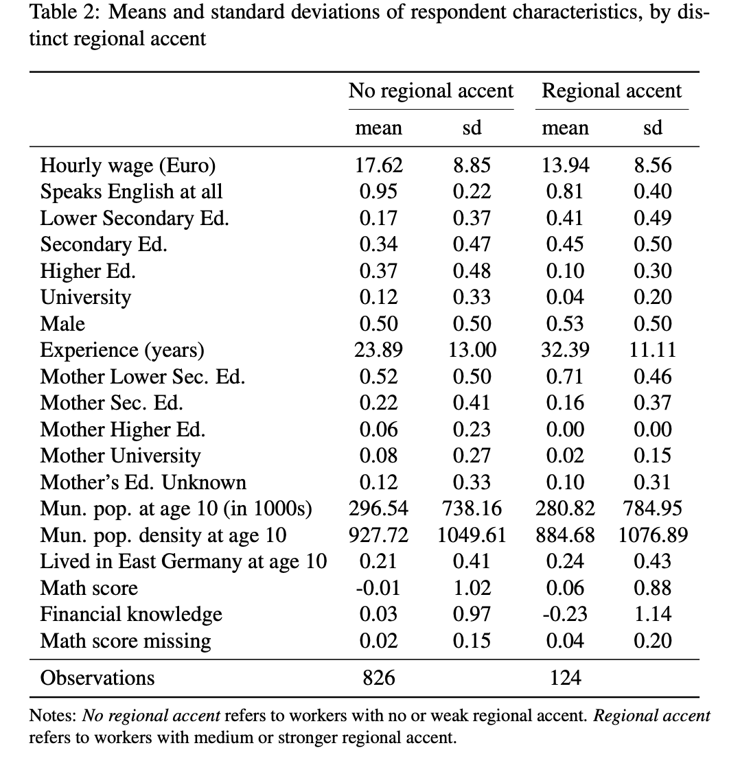 New Study: "Speaking with a distinctive regional accent reduces wages by an amount that is comparable to the gender wage gap" (In Germany). https://www.nber.org/papers/w26719#fromrss …pic.twitter.com/nQNGyZG0zb