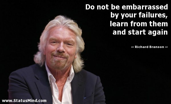 "Don't be embarrassed by your failures." Sir Richard Branson. -