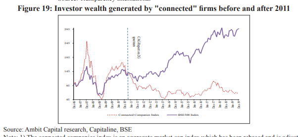 + v v interesting. "connected" firms ie companies dependent on govt and political connections have massively lagged the general market. But check out the UPA growth spurt for them in 2006-2008 ;) +pic.twitter.com/UuHiYjpDgK