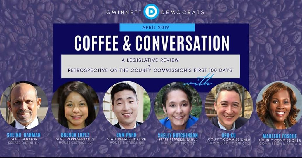 Come join me this Saturday, April 13th for coffee and a conservation about the 2019 legislative session with the @GwinnettDems. Hope to see you there!