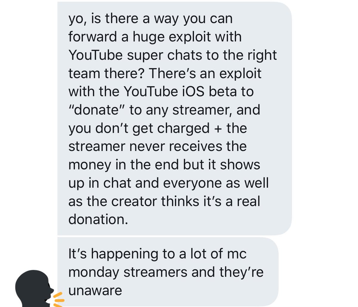 Sorry for the delay here – Testers of a Beta version of the YouTube iOS app were “testing” Super Chats without actually purchasing them / being charged. Since they never paid, creators didn’t receive revenue. This is now fixed, as purchases are now blocked for iOS Beta testers.
