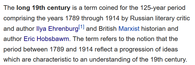 Hobsbawm, if I recall correctly, reckoned a “short 20th century” from WWI to the dissolution of the Soviet Union. So we would now be nearly thirty years into the long 21st century.