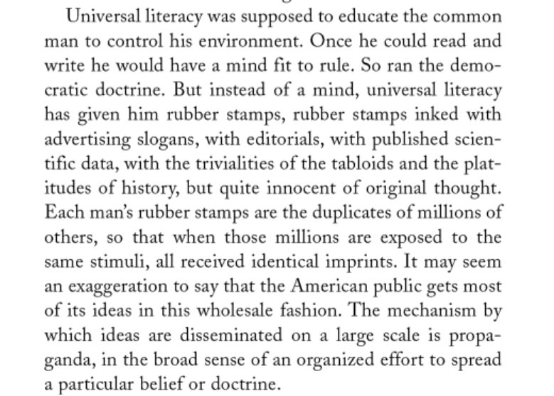 Edward Bernays on mass literacy from Propaganda (1928!)pic.twitter.com/L4lILgtAK0