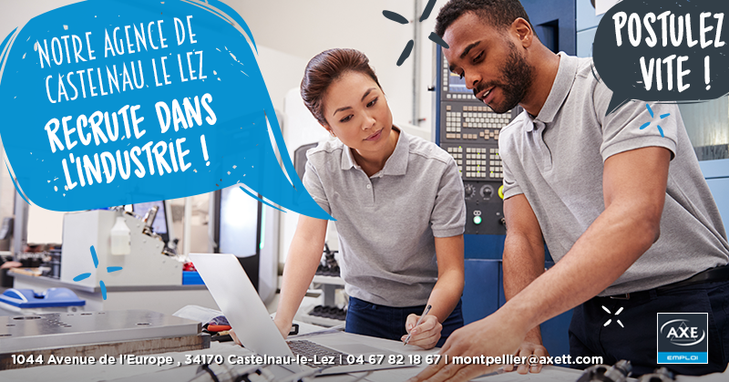 Notre agence Axe Emploi de Castelnau le Lez recrute dans le secteur de l'industrie !