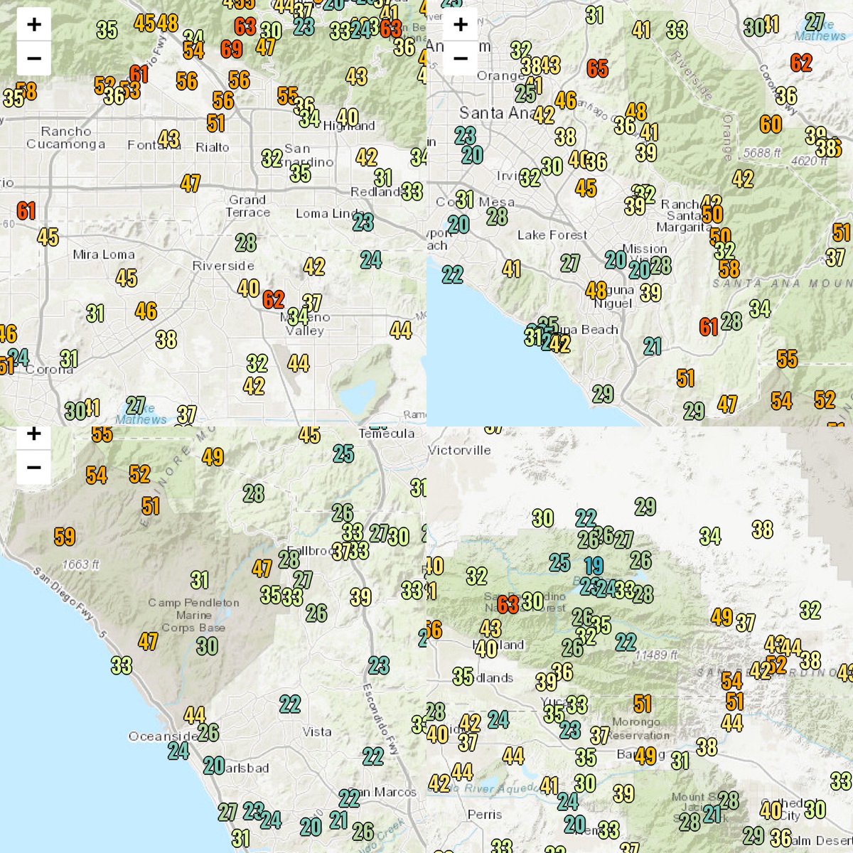 #realwx or Big Bear and Thermal#atmosphere and San Pasqual RAWS a 54 degree swing!pic.twitter.com/V9Dylg341g