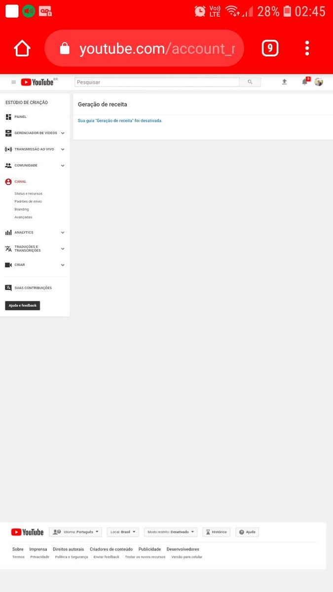 @TeamYouTube Aí está, quando eu clico no link vai pra essa página fala que tá desativada minha monetizaçãopic.twitter.com/ytyroylD9l