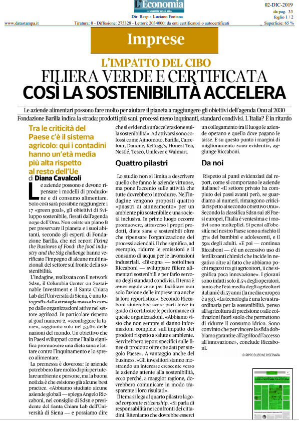 Oggi #Economia @Corriere parla del report "Fixing the businnes of food"di @BarillaCFN @UNSDSN @CCSI_Columbia @SantachiaraLab