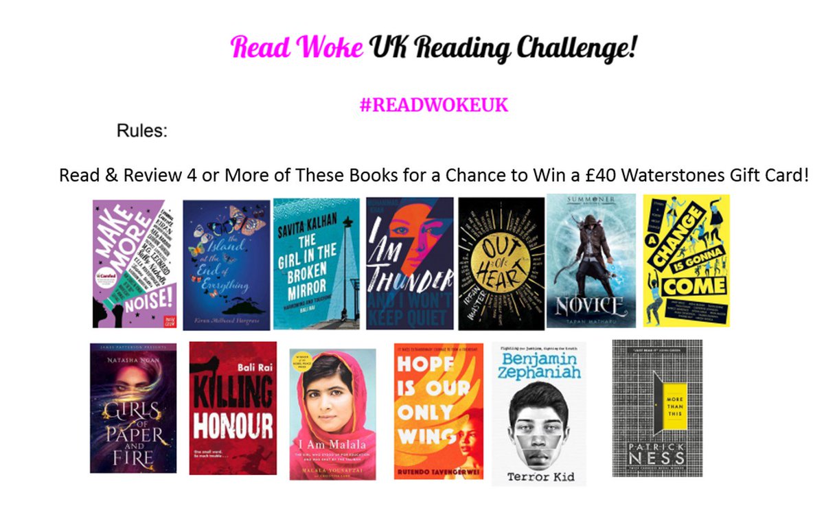 #ReadWokeUK Reading Challenge! Inspired by an article on@sljournal https://bit.ly/2LCosVi@Malala@BZephaniah@Ayisha_Malik@YasminwithanE@nikeshshukla@Okwongapic.twitter.com/bz5eTzeWqb