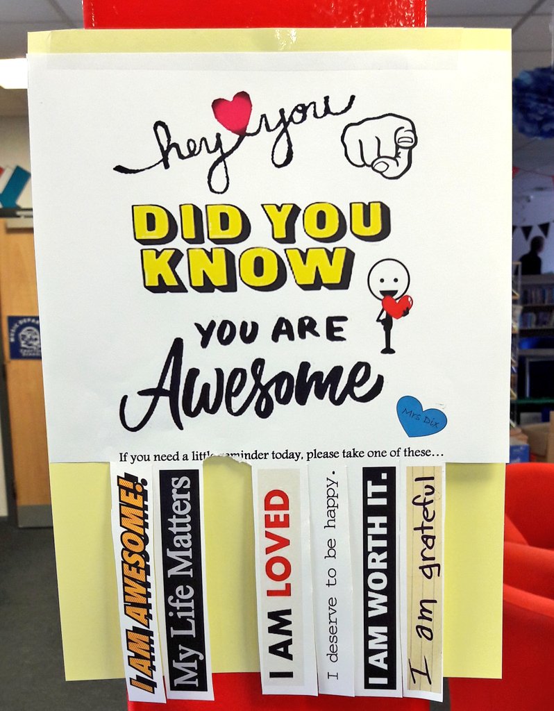 #wellbeingwednesday#schlibrarydisplays#librarylife#positivity#youareawesome#librarian#schoollibrariesmatter#MentalHealthMatters#betheinspiration#youngmindspic.twitter.com/tXnNQfh4ES