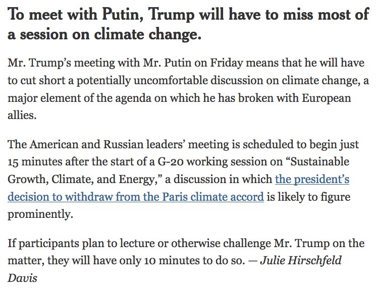 Oh, and to meet with Putin today, Trump will have to skip most of the session on climate change. https://www.nytimes.com/2017/07/07/world/europe/g20-hamburg-trump-putin-protests.html …pic.twitter.com/ZKhBQiyEa8