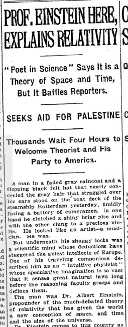 Albert Einstein arrived in New York, on this day in 1921, and answered questions from reporters on his theory of relativity. https://nyti.ms/2Gp20vR pic.twitter.com/j7SKJ8D4oS