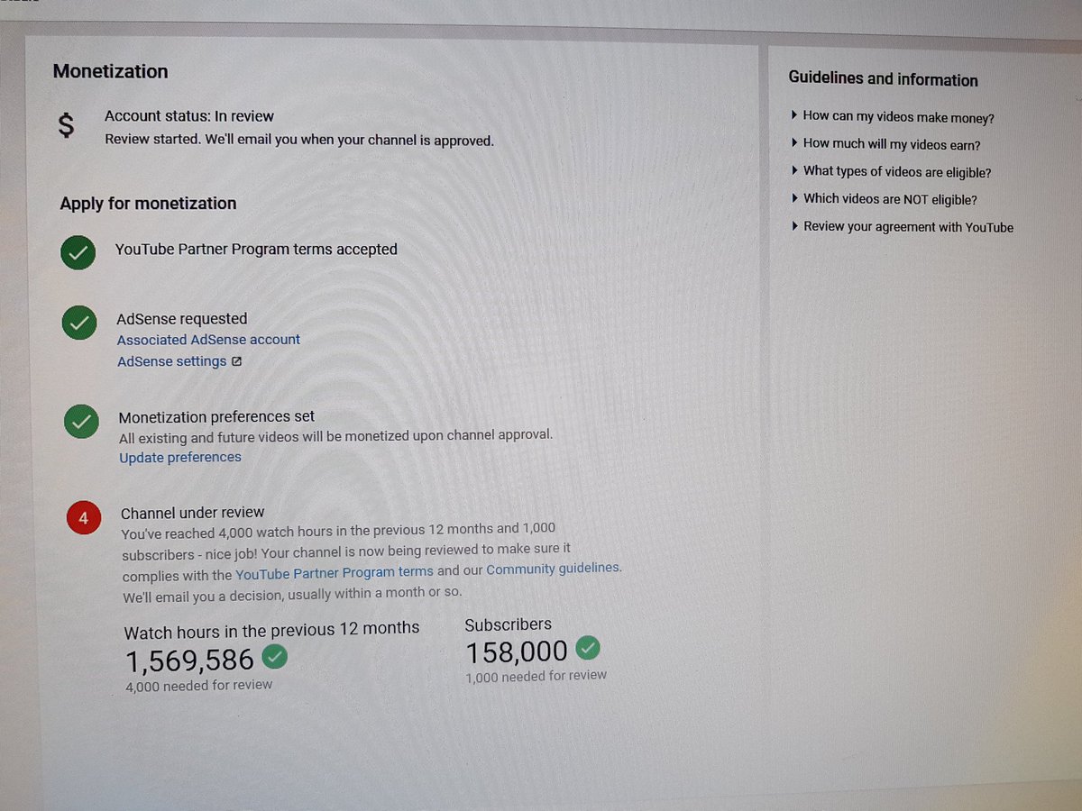 @TeamYouTube Hi @YouTube @YTCreators @YouTubeTeam Please, Active my Monetization because my 4000 watch hours are completed and 1000 subscribers also. it's still pending from last 115 days Here is My channel link. https://www.youtube.com/channel/UCBsFuP2-v9el4TFEevkytRg …pic.twitter.com/RtuIwTFehw