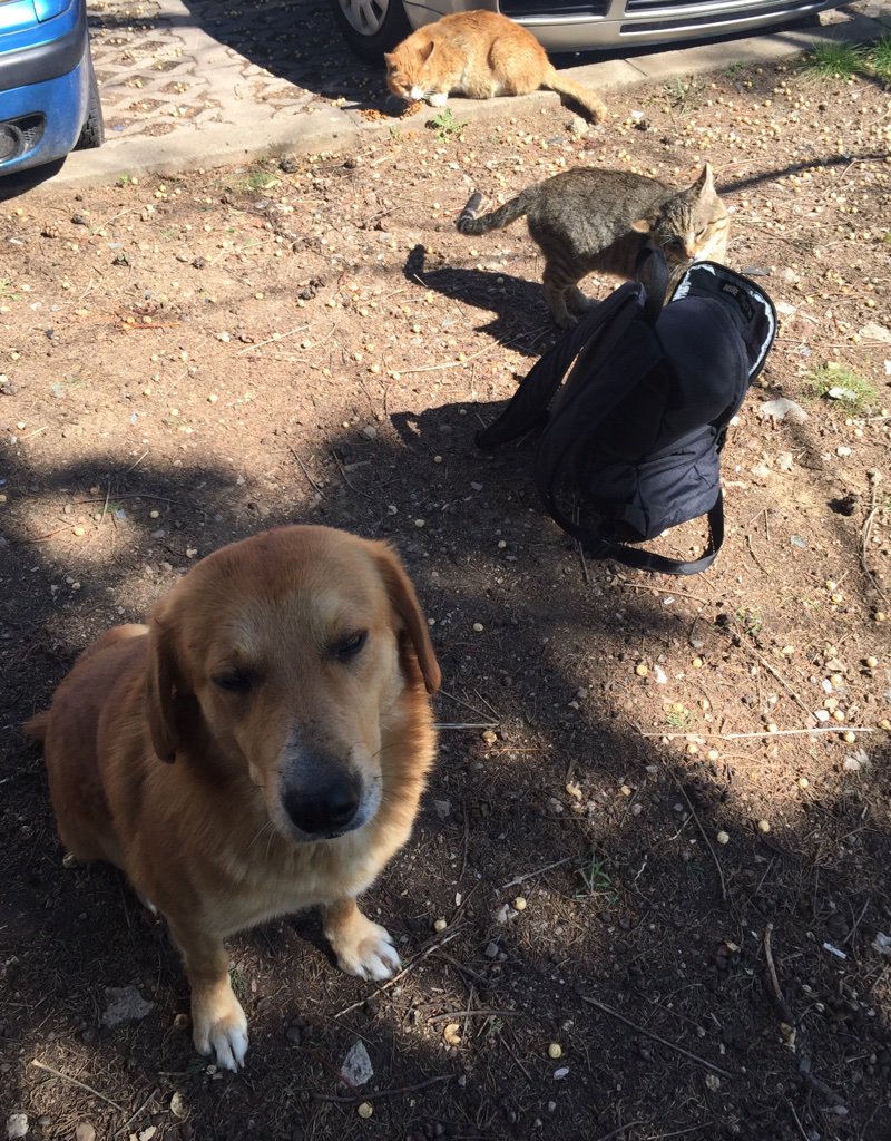 YellowDog,GreenCat (they r called green here)&Vasya.GreenCat's theoretically not homeless,always outside¬ fixed.pic.twitter.com/Ao2vYNis1H