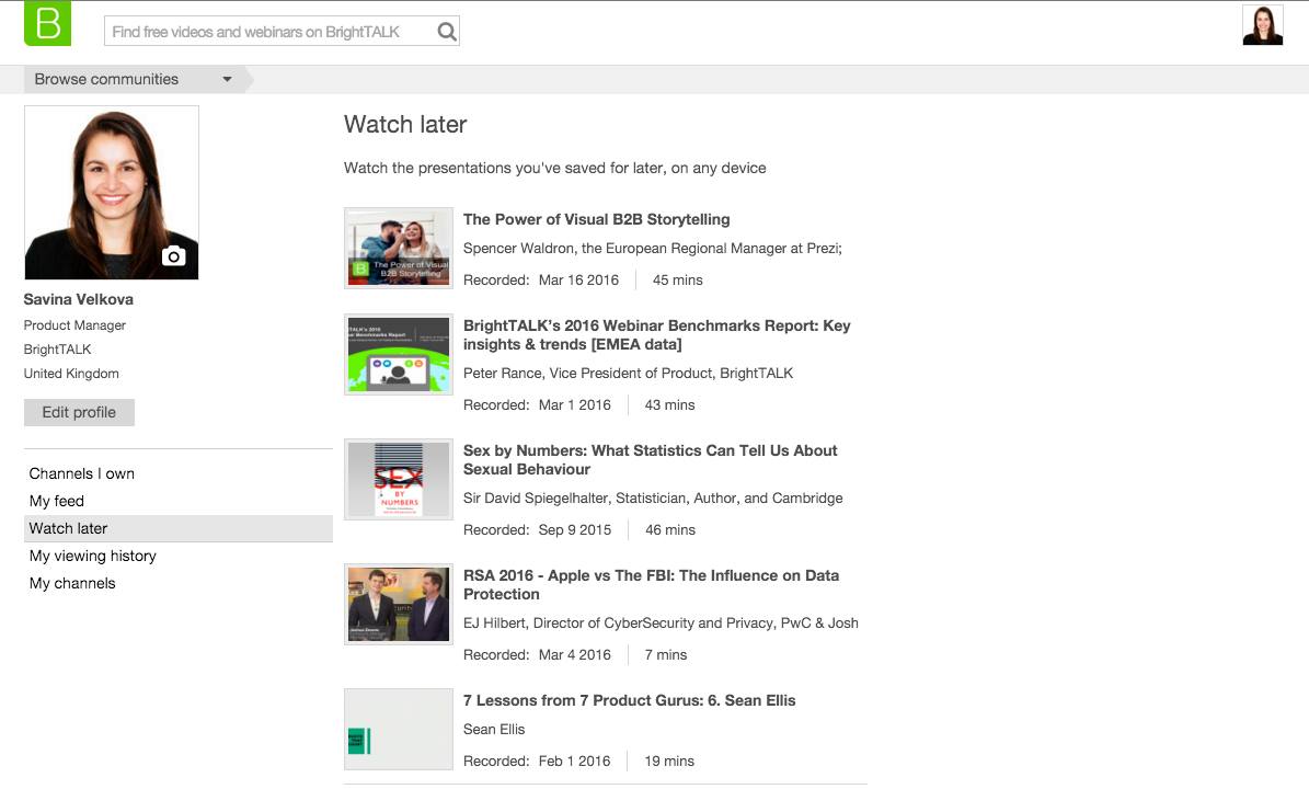 Curate your own binge-watch worthy playlist with BrightTALK's new 'Watch later' feature. Let us know what you think!pic.twitter.com/V3DThr1HJ6