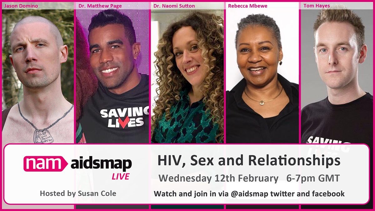 #aidsmapLIVE will be Valentines Special: HIV, Sex & Relationships on Weds 12th Feb 6-7pm (GMT) with incredible:@mbewe_rebecca@PositiveLad@TheJasonDomino@DrNaomiSutton@mattisfaction85 (I’m hosting). Join us live on@aidsmap twitter & Facebook.pic.twitter.com/NxbJfa80Yj