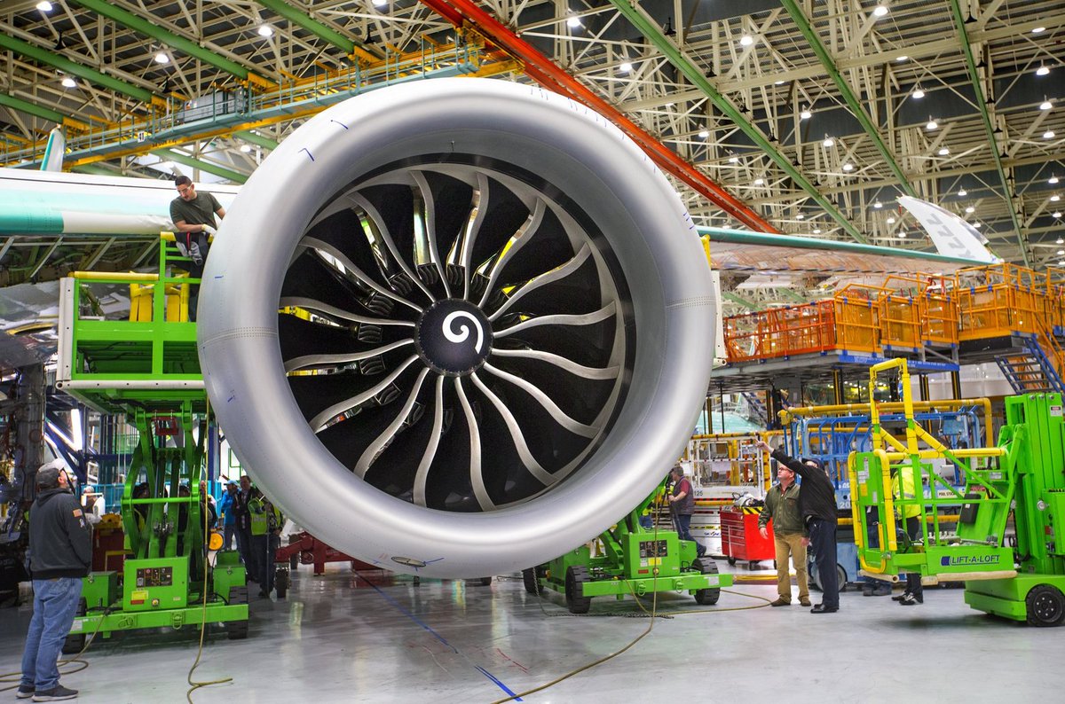 Gives new meaning to the acronym BFE. http://bit.ly/2F8CHQK 777X’s GE9X engines are now hung on WH001, Boeing’s first test aircraft. (via