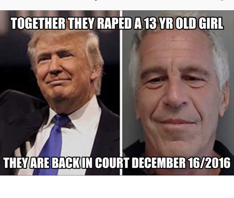 #TrumpToo needs to be investigated for raping a 13-year-old girl, & for all the sex he had with minors courtesy of his friend, Epstein.