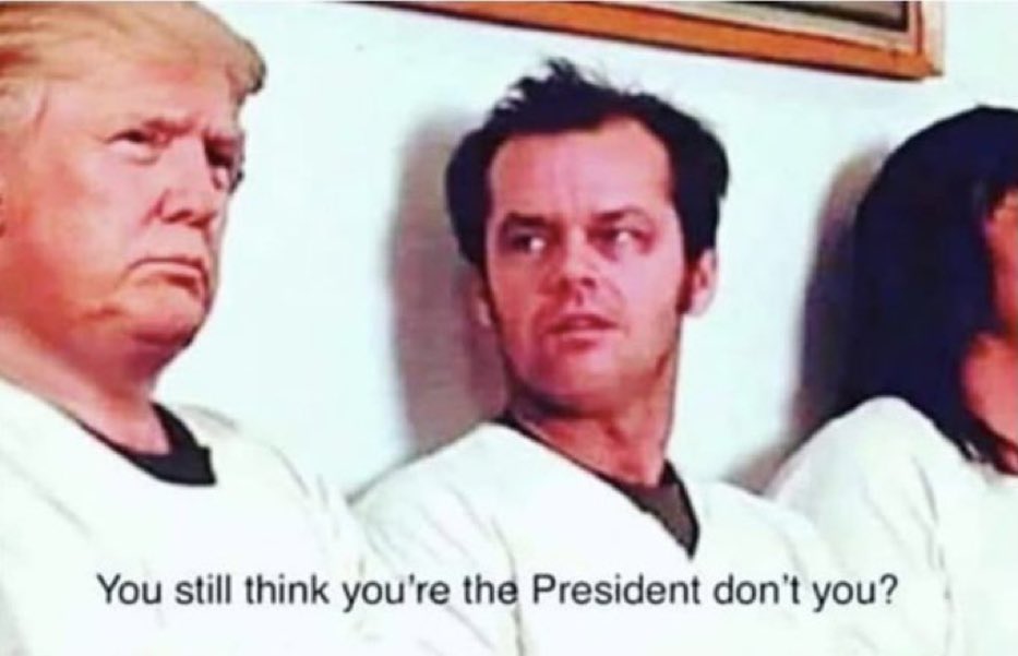 GOP voters say Trump lost. GOP swing states say Trump lost. GOP AG’s say Trump lost. GOP Secretaries of State say Trump lost. GOP poll watchers say Trump lost. Fox News says Trump lost. SCOTUS says Trump lost. But yeah… it was rigged. One Flew Over The Coup Coup’s Nest…