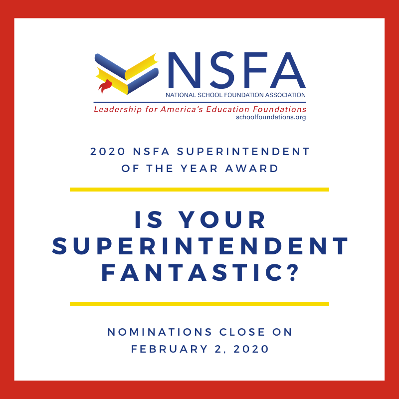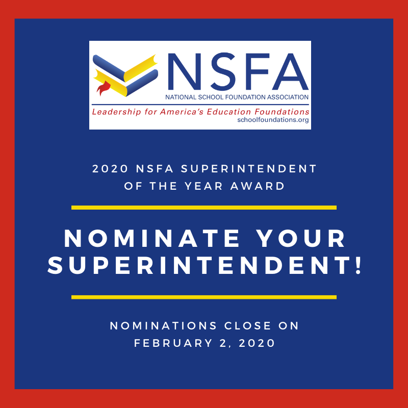 Calling all NSFA member foundations! Have you nominated your superintendent for the 2020 NSFA Superintendent of the Year Award? Make sure to fill out your nomination here: http://ow.ly/uTcM50xSiwd