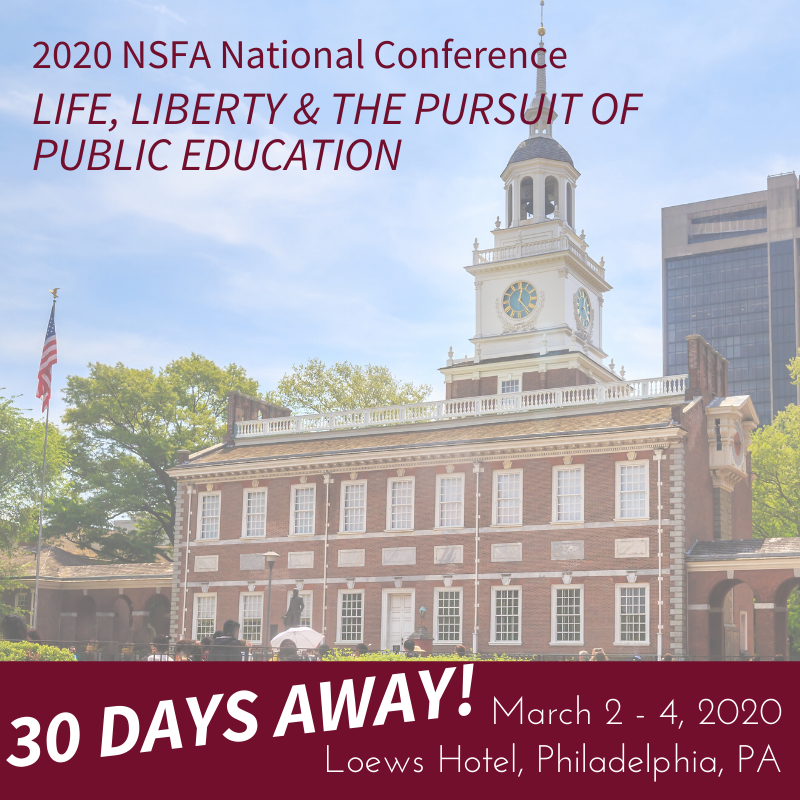 30 days left until our annual NSFA National Conference in Philadelphia, PA! Get ready because we're excited for everyone to experience the "Life, Liberty, and the Pursuit of Public Education" REGISTER NOW--> http://ow.ly/pAmx50ya4LX pic.twitter.com/6G5M7tmnuI