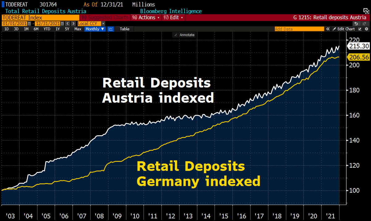 #Austria, where citizens also hoard a lot of money in their accounts that is not protected from#inflation. Retail deposits have even increased more than in#Germany since 2003. Inflation in Austria has just jumped >5% & hit the highest level since 1984.pic.twitter.com/mTcUt4RS34