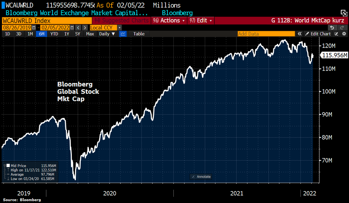 Global stocks have gained $3.1tn in mkt cap this week on the back of strong results from comps across the econ & as US Dollar weakens vs Euro (-2.7%), making equities from non-dollar area, such as Europe, more valuable. Global stocks now worth $116tn, equal to 137% of global GDP.pic.twitter.com/GfIInxq7bq