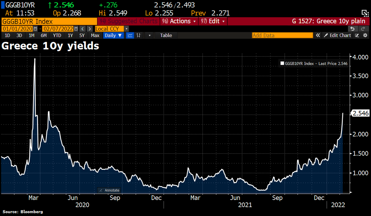 #ECB's hawkish pivot.#Greece's 10y yields jump by 27bps to 2.55%, the highest level since Apr 2020.pic.twitter.com/RWyI7xq8IK