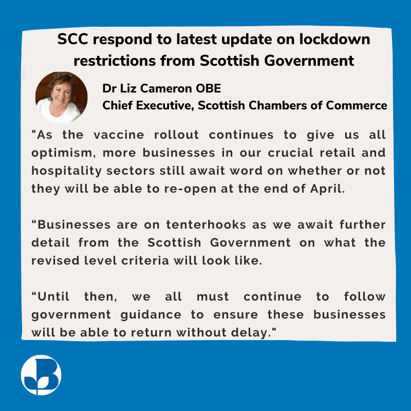 🆕📢Missing the Easter period, which is usually a boom period for retail and hospitality, means that the delay to re-opening risks widespread business collapse. More: https://www.scottishchambers.org.uk/press_policy/scc-respond-to-latest-update-on-lockdown-restrictions-from-scottish-government-2/ …pic.twitter.com/TQKffEi3kX