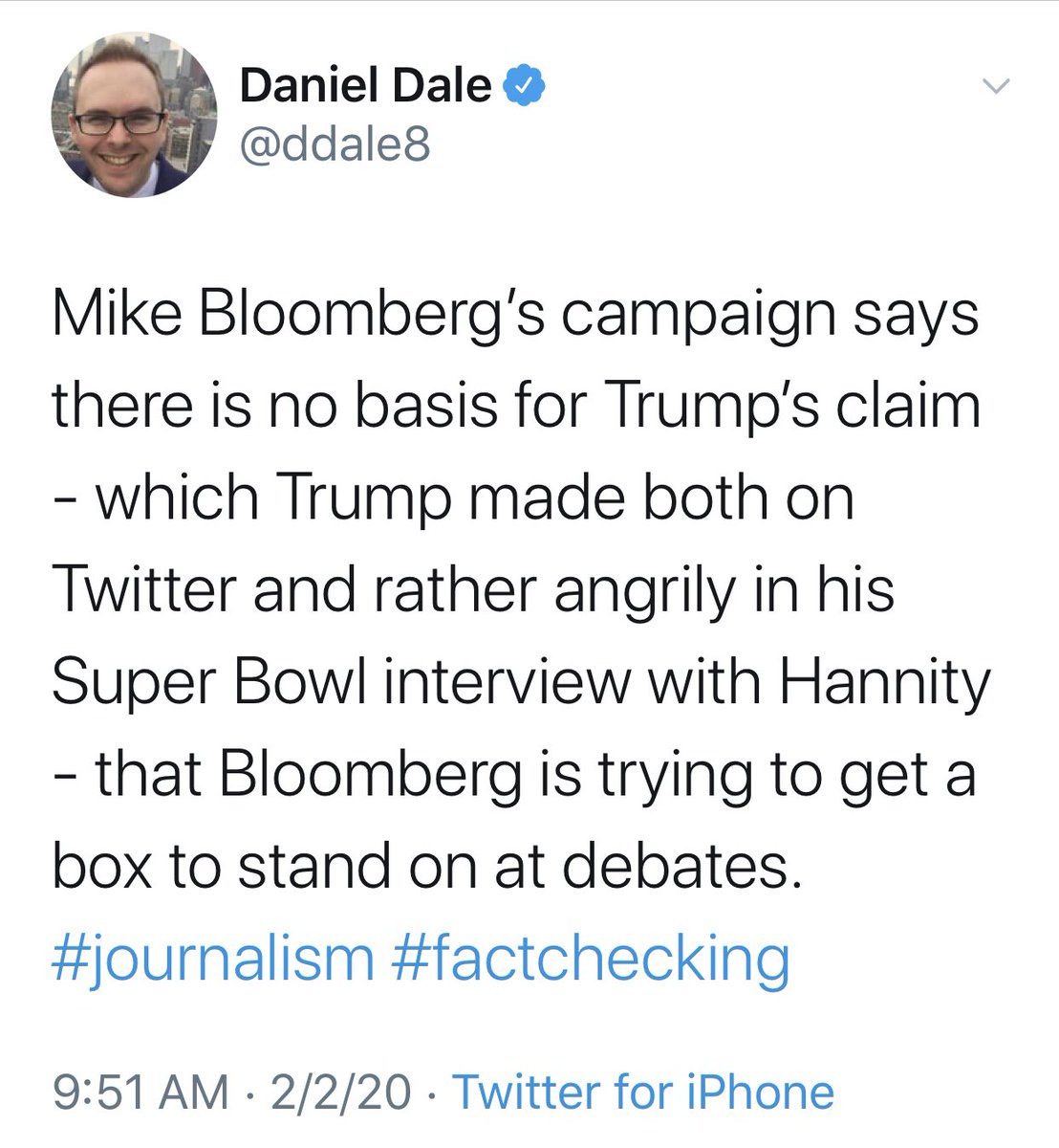 Why is the media withholding information about the box that Bloomberg demanded to stand on during the debates? The public has a right to know if a foreign country paid for it! Investigate the