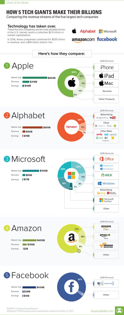 This giant visual shows how Apple, Alphabet, Microsoft, Amazon and Facebook all make money http://moneybadger.stocktwits.com/how-do-tech-companies-make-money/?utm_medium=community-twitter&utm_source=twitter.com&utm_campaign=outboundteam …