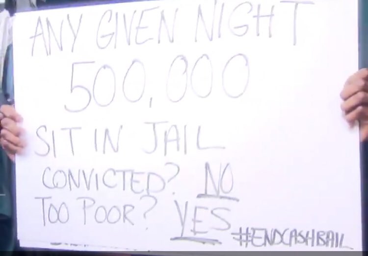 ON ANY GIVEN NIGHT, 500,000 SIT IN JAIL. NOT CONVICTED. JUST TOO POOR TO AFFORD TO BUY THEIR FREEDOM. #ENDCASHBAILpic.twitter.com/RfTAF6i8SZ