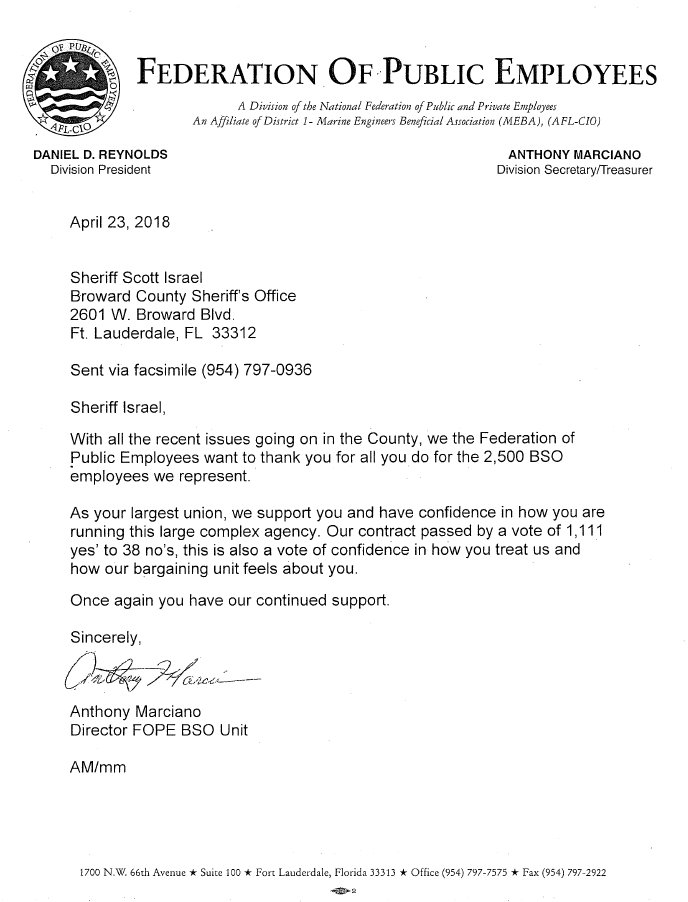 BSO's largest union weighs in with a strong statement of support for Sheriff Israel. FOPE represents 2,500 sworn deputies, community service aides, E-911 communications operators, and others throughout the agency.pic.twitter.com/Qnac8tqMh2